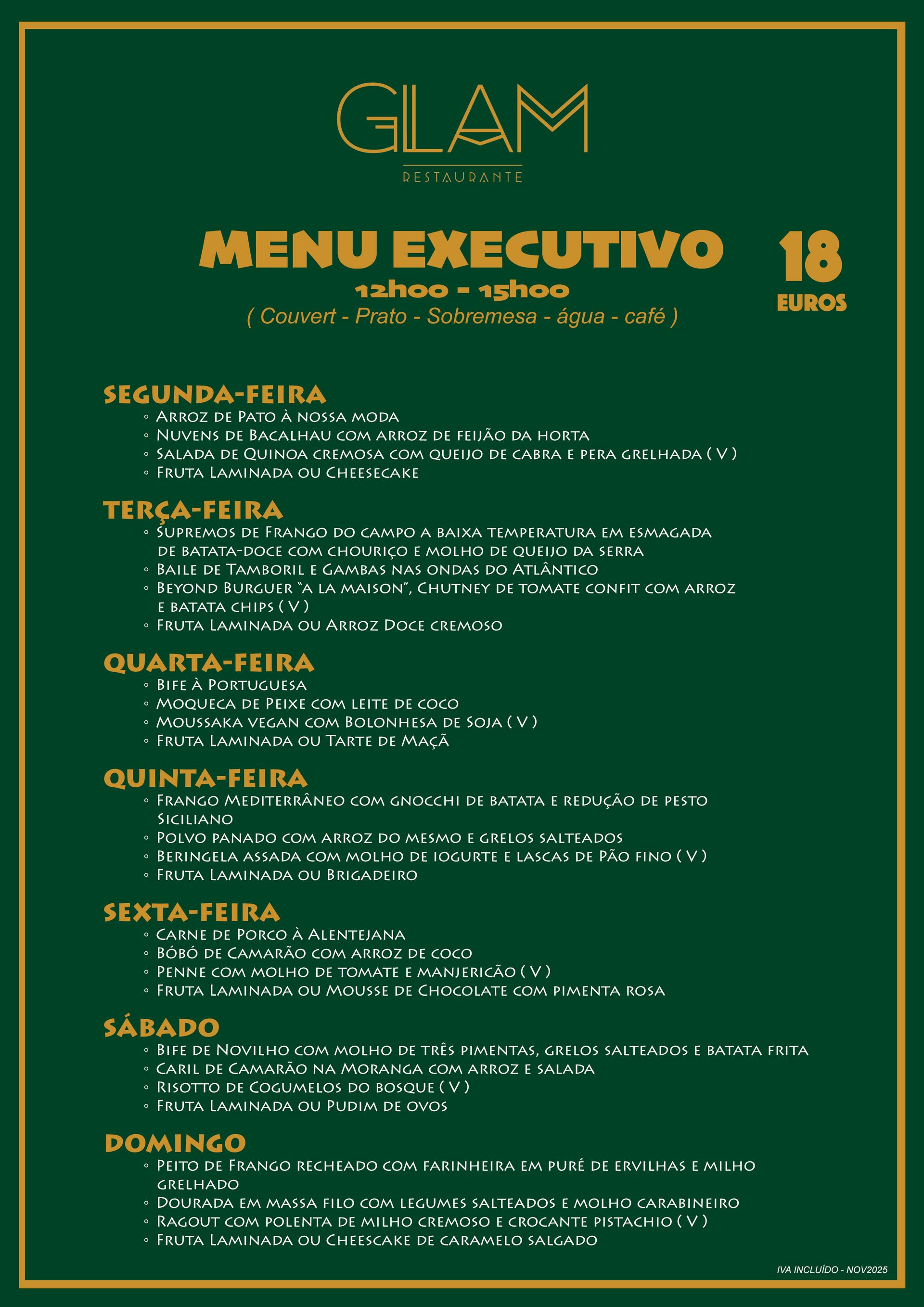 O Restaurante GLAM abriu portas em Setembro de 2025 e promete marcar a gastronomia lisboeta. Sofisticado e elegante, o espaço combina design contemporâneo com um ambiente acolhedor, pensado para experiências memoráveis. A ementa, assinada pelo nosso Chef Pedro Sobrinho dá um grande destaque à cozinha Portuguesa mas também com influência Internacional, privilegia sabores autênticos reinventados com criatividade, acompanhados por uma criteriosa seleção de vinhos e deliciosos cocktails. Mais do que um restaurante, o GLAM será um ponto de encontro para quem procura viver momentos únicos, com uma comida irresistível e um serviço cuidado que transforma cada refeição numa celebração de estilo e bom gosto.
